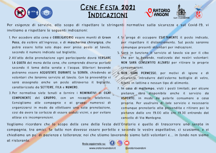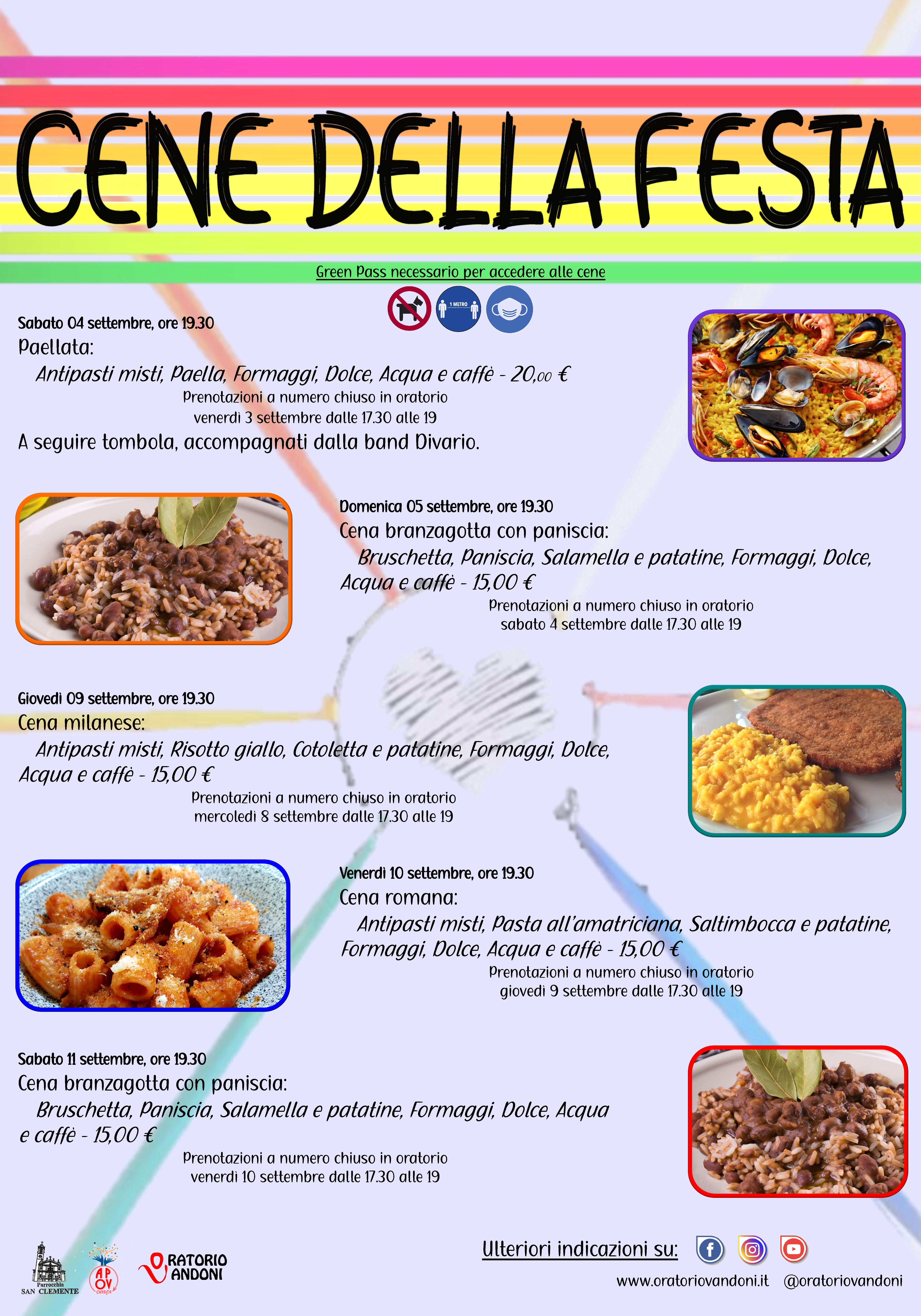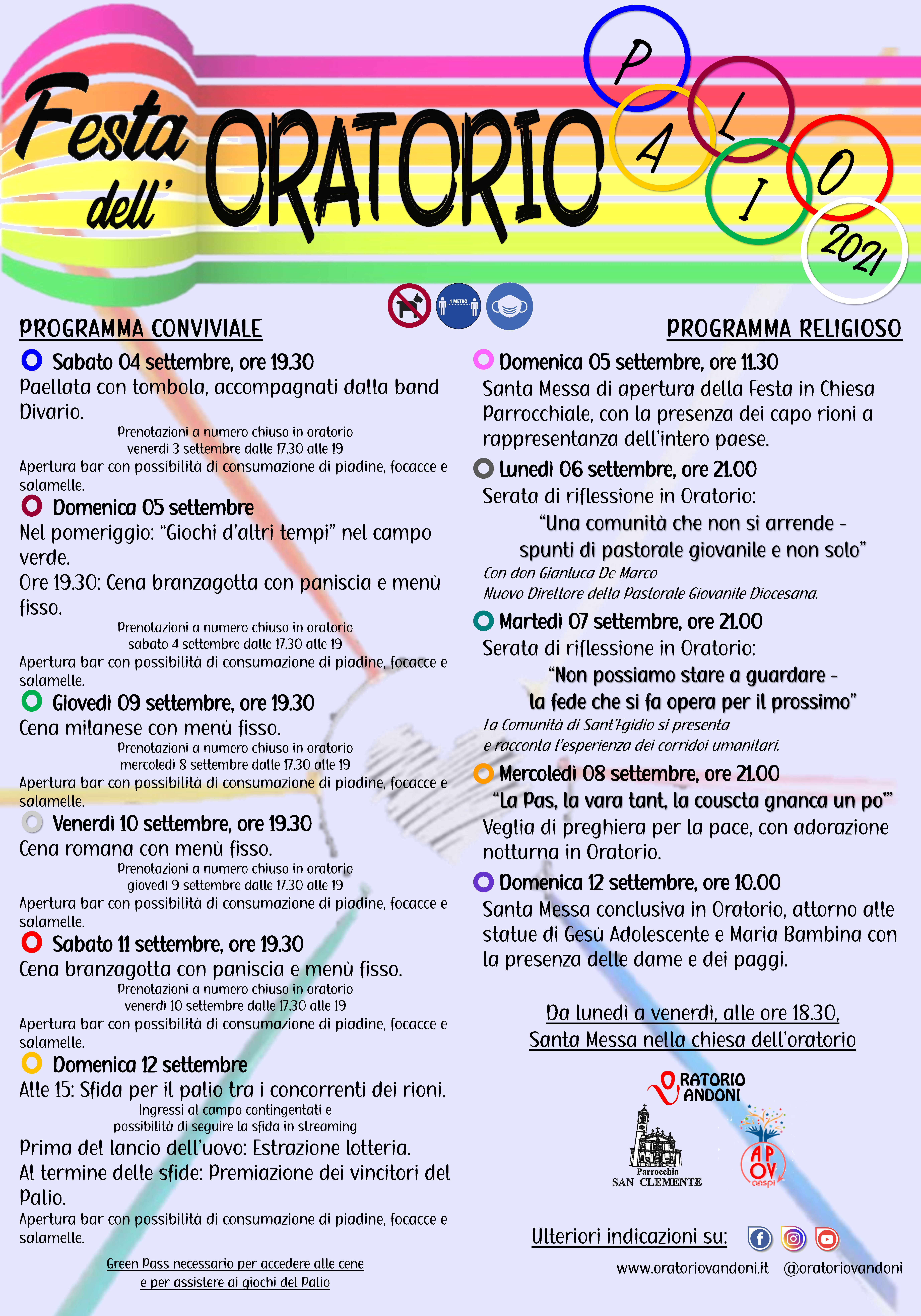 Siamo quasi a settembre e questo significa… Festa dell’Oratorio!!!Il programma di quest’anno prevede diversi momenti, sia religiosi che conviviali, organizzati nel rispetto delle normative Covid. Molti di essi saranno a capienza ridotta, su prenotazione: restate sintonizzati per tutte le info necessarie!