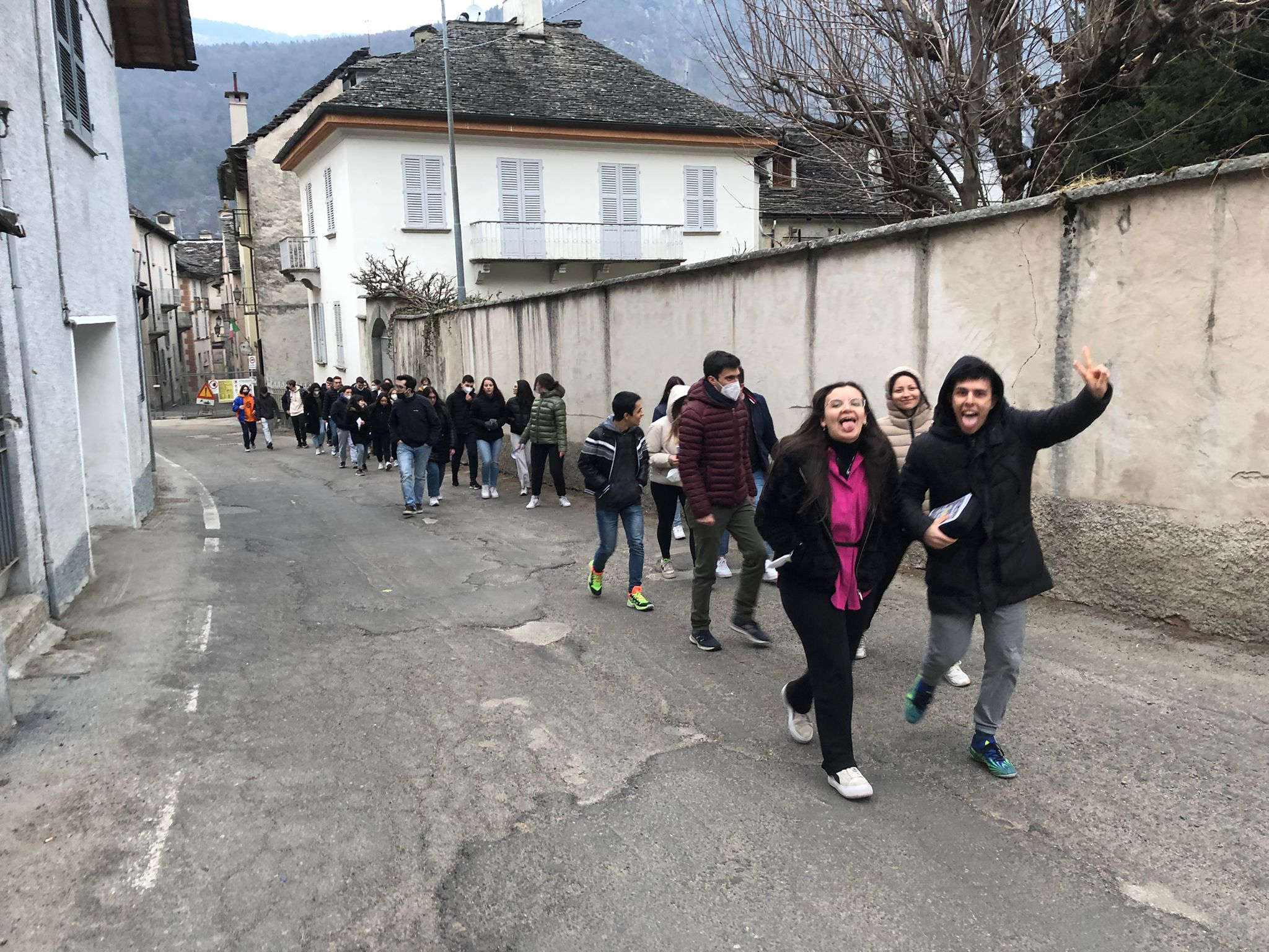 Ad introdurre la prima giornata è stata la canzone Insieme di Lorenzo Baglioni, per poi partire subito in “missione”, divisi in piccoli gruppetti, in giro per Malesco con tre obiettivi da raggiungere collaborando: realizzare una foto artistica, trovare un aneddoto storico su Malesco e produrre un contenuto creativo sul tema dello stare insieme. Per compiere le loro missioni i ragazzi hanno dovuto interagire anche con gli abitanti di Malesco, scoprendone le origini e imparando frasi in dialetto. La serata, dopo la cena al sacco, è stata animata dalla preghiera di don Gabriele, improntata sulla parresia.