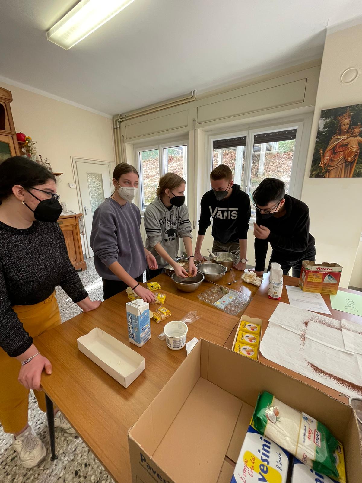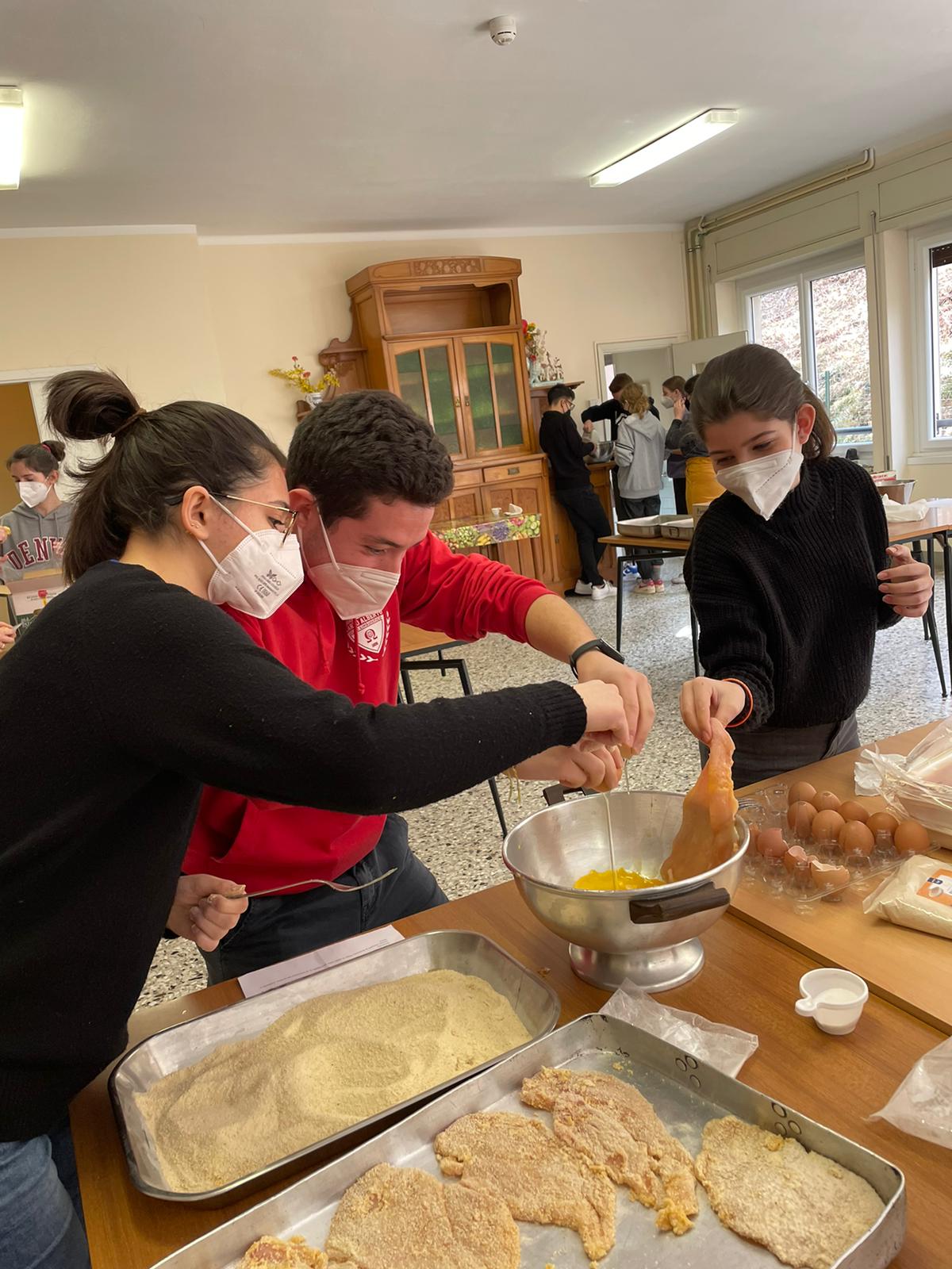 La domenica mattina, dopo colazione, sono proseguite le attività pratiche, che prevedevano la realizzazione del pranzo con un menù composto da antipasti misti, gnocchi con speck e zucchine, bistecche impanate con patate e tiramisù, preparato completamente dai ragazzi divisi in gruppetti, così come anche le bevande e l’apparecchiatura.