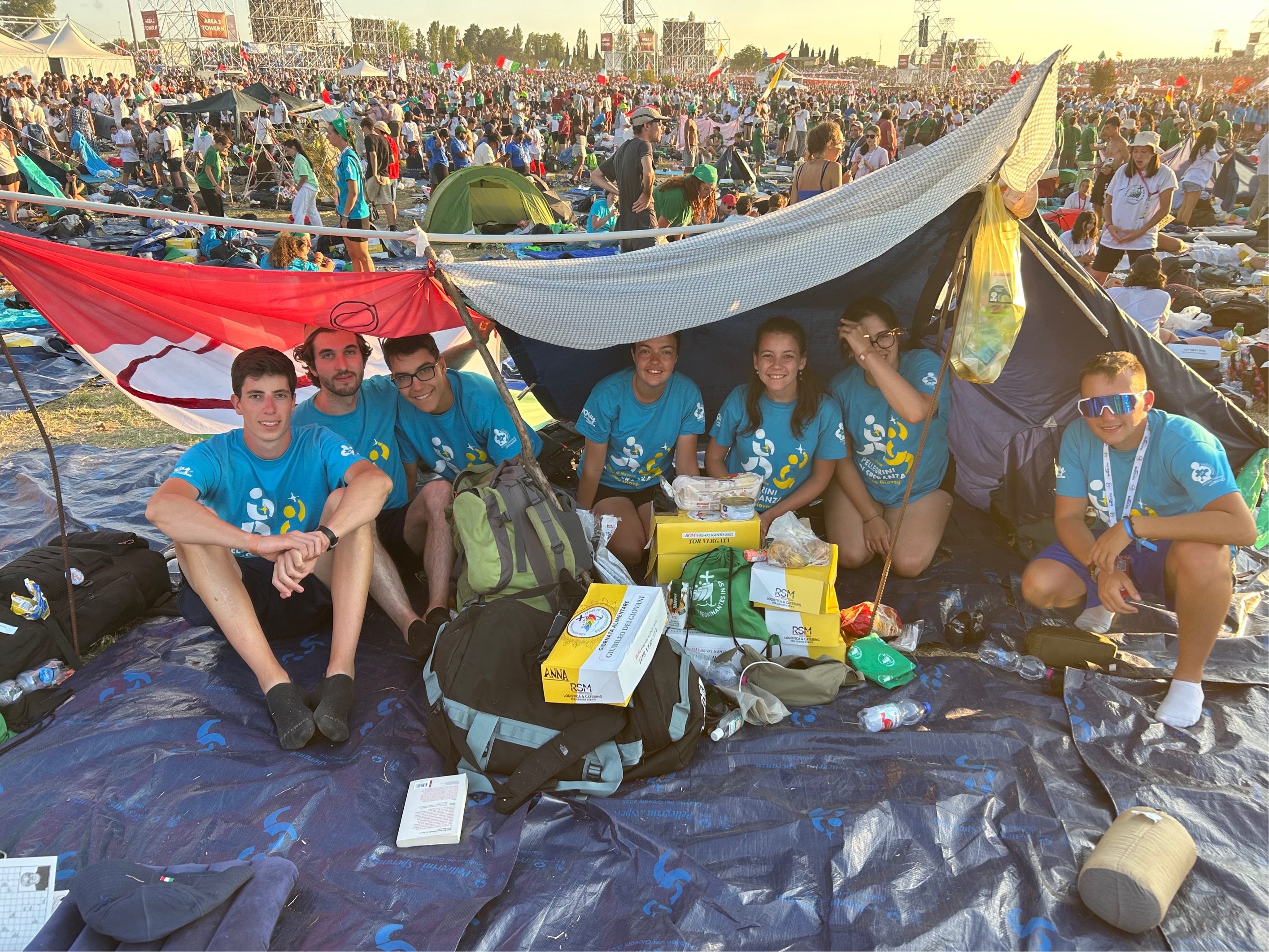 L’ultima notte è stata difficile: fredda e scomoda, tormentata da una leggera pioggia che ha disturbato il sonno nostro e di pellegrini provenienti da ogni parte del mondo per una sola ragione: Dio e la Speranza! Al mattino, poi, al nostro risveglio un segno ha rincuorato ciascuno di noi: un arcobaleno comparso in cielo, che abbiamo riletto come simbolo della Sua presenza, che c’è sempre stata, e ci ha accompagnato soprattutto in questa settimana, impegnativa, ma arricchente!