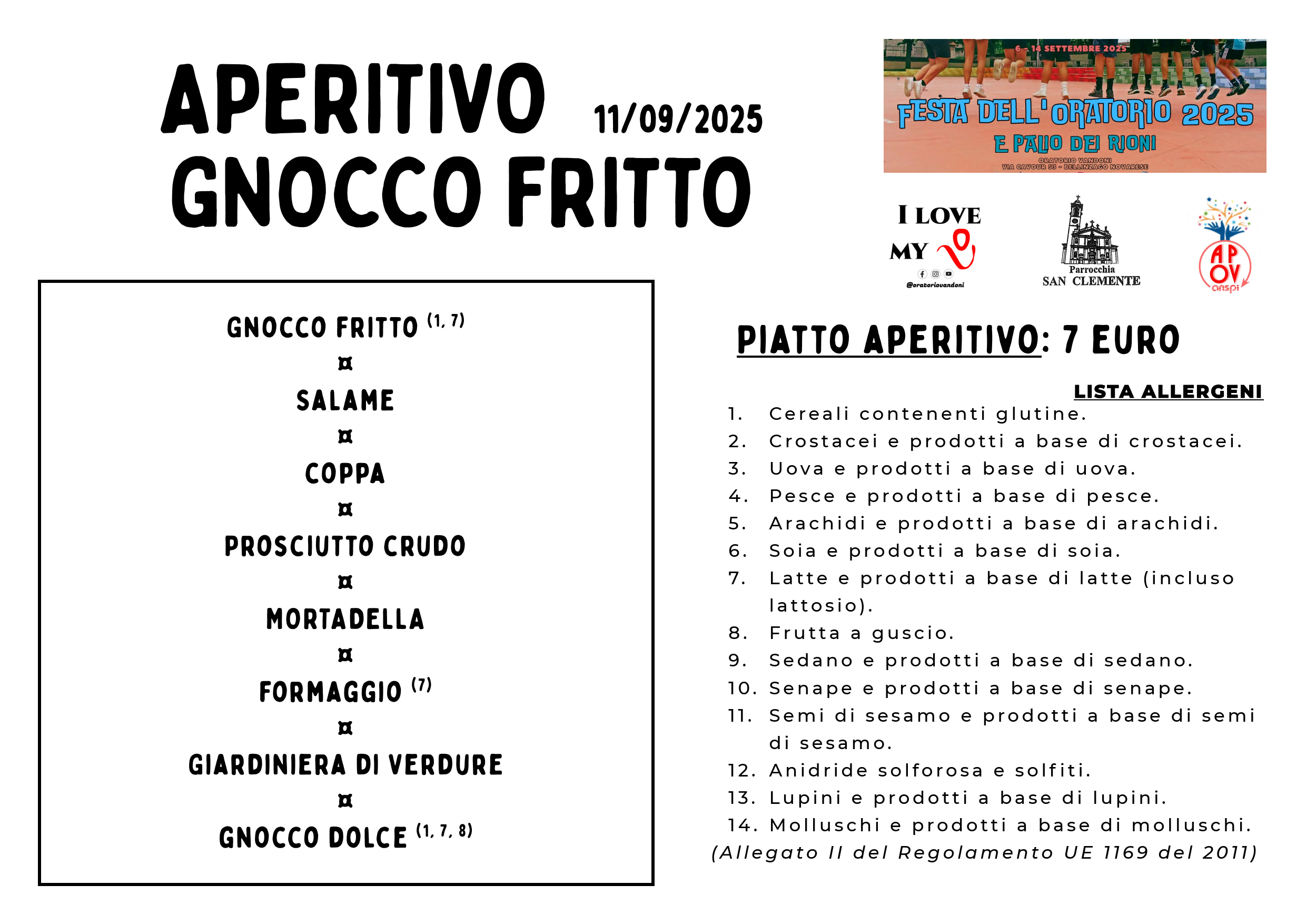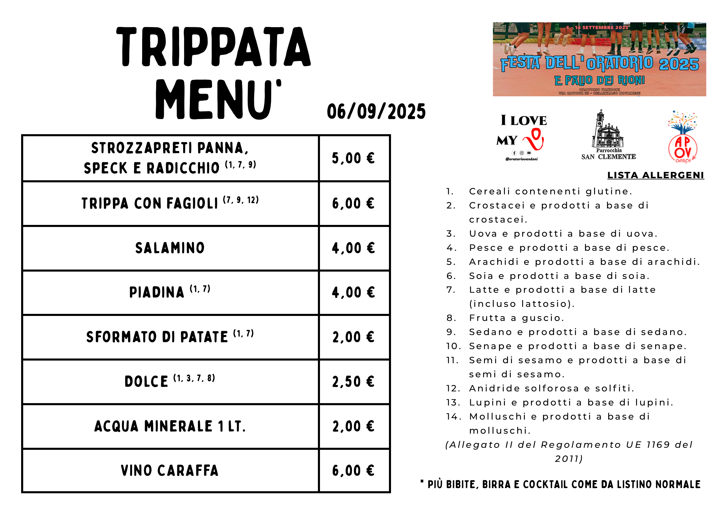 La cena termina alle ore 21.00: dopo tale orario saranno disponibili per la vendita solo piadine e panini con salamella.