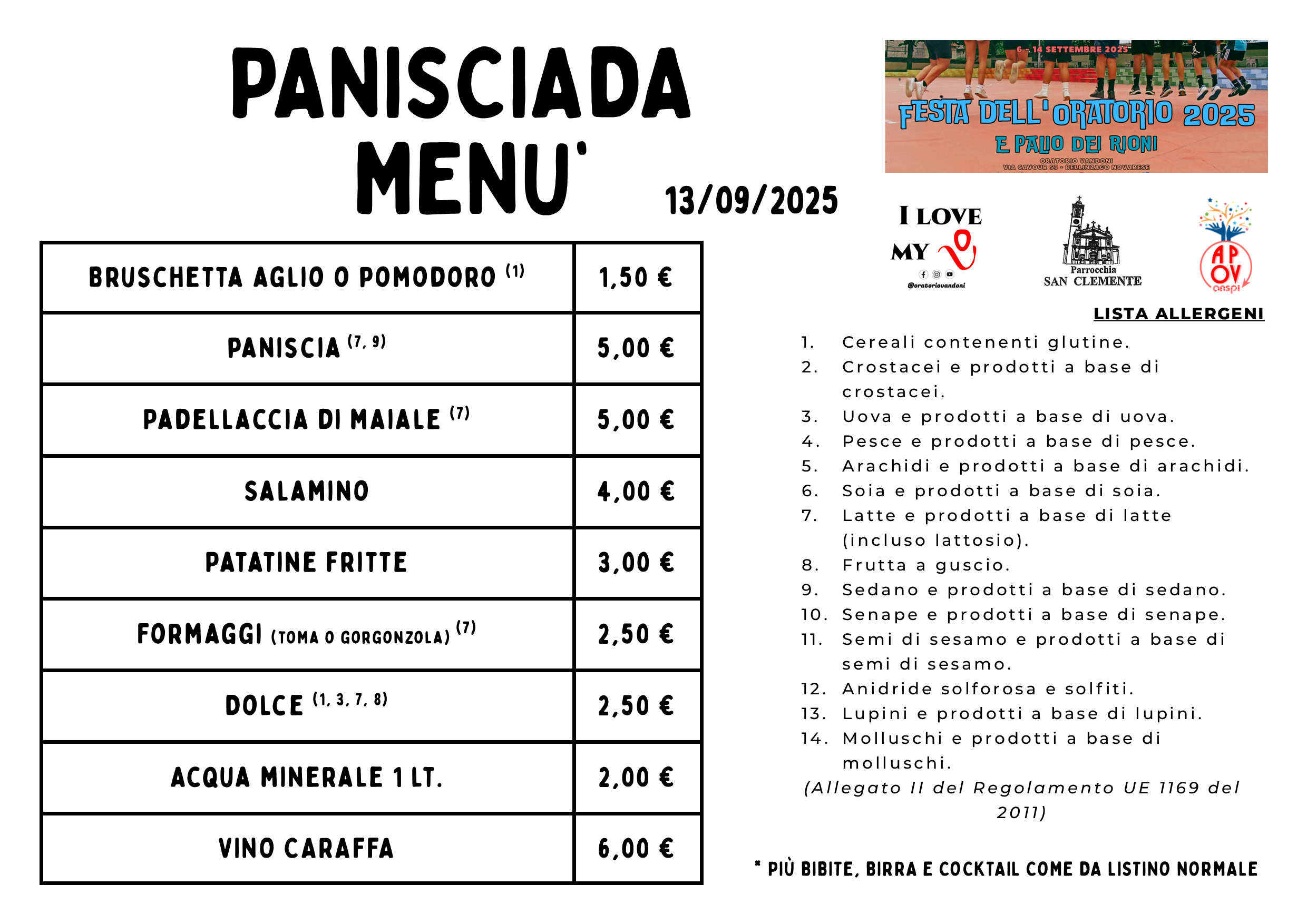 Vogliamo ricordare che lo scopo della Panisciada è quello di trascorrere una serata in compagnia, tra amici. Se tutto non dovesse essere perfetto e secondo le vostre aspettative, ci scusiamo, e vi chiediamo un po’ di pazienza e tolleranza; noi che stiamo lavorando siamo tutti volontari e… in fondo non siamo al ristorante.