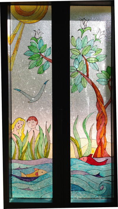 La vita è un cammino, la fede è un cammino, la crescita è un cammino… le vetrate colorate hanno il compito di aiutare chiunque entri nella chiesetta a dare un senso al proprio cammino di vita. La trasparenza del vetro ci permette di rileggere la vita di alcuni personaggi della Bibbia, che si sono messi in cammino con il Signore, sovrapponendola alla nostra. E’ una grande avventura, affascinante, è il cammino di Dio con l’uomo. Come nelle grandi chiese medioevali, le vetrate lasciano filtrare la luce del Signore nelle trame della vita degli uomini. Le immagini rendono possibile una catechesi della storia della salvezza comprensibile da tutti.