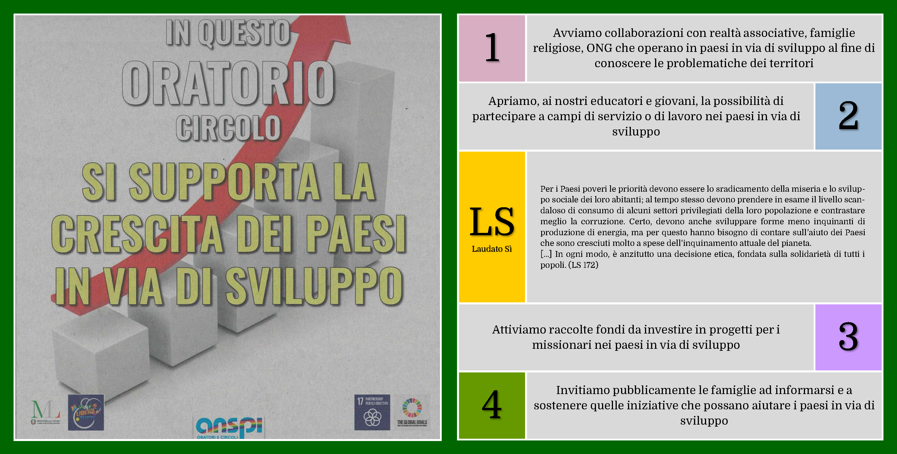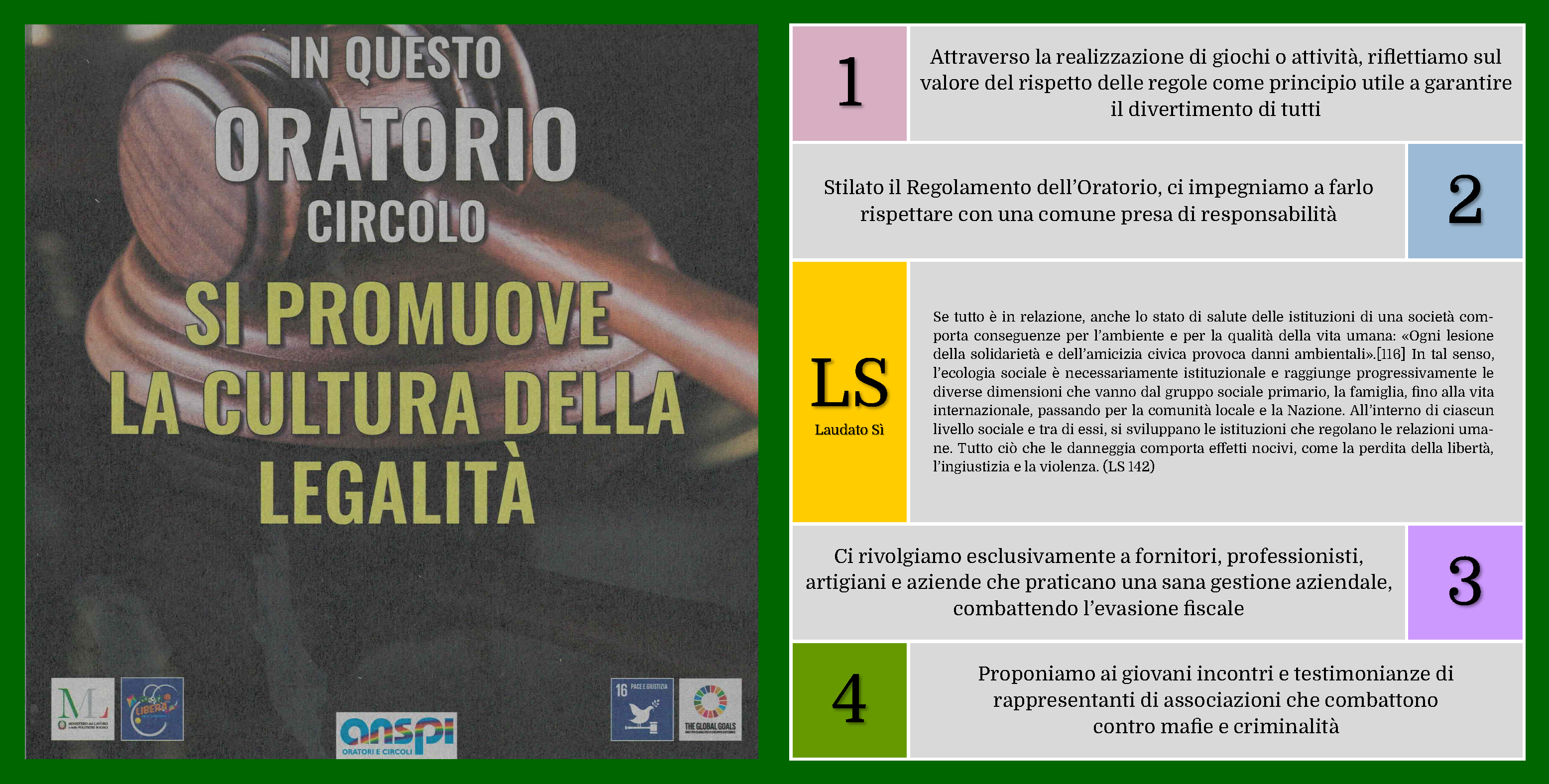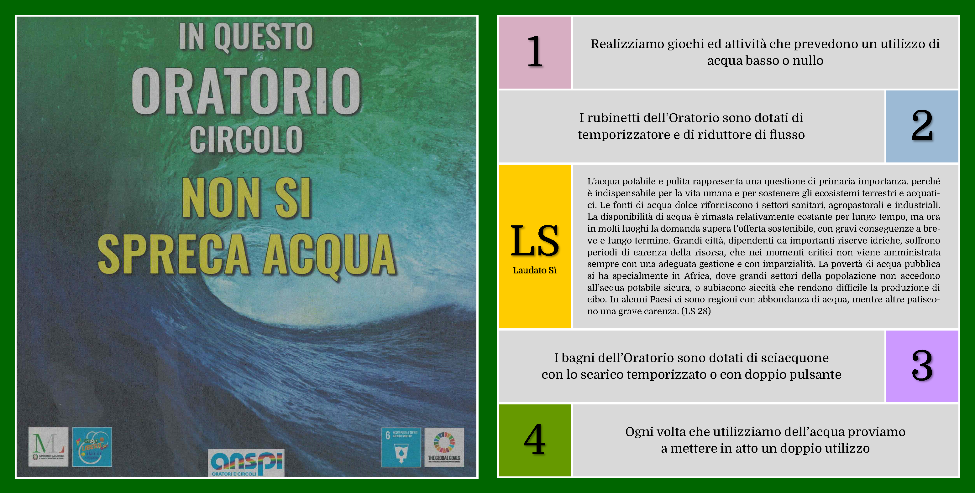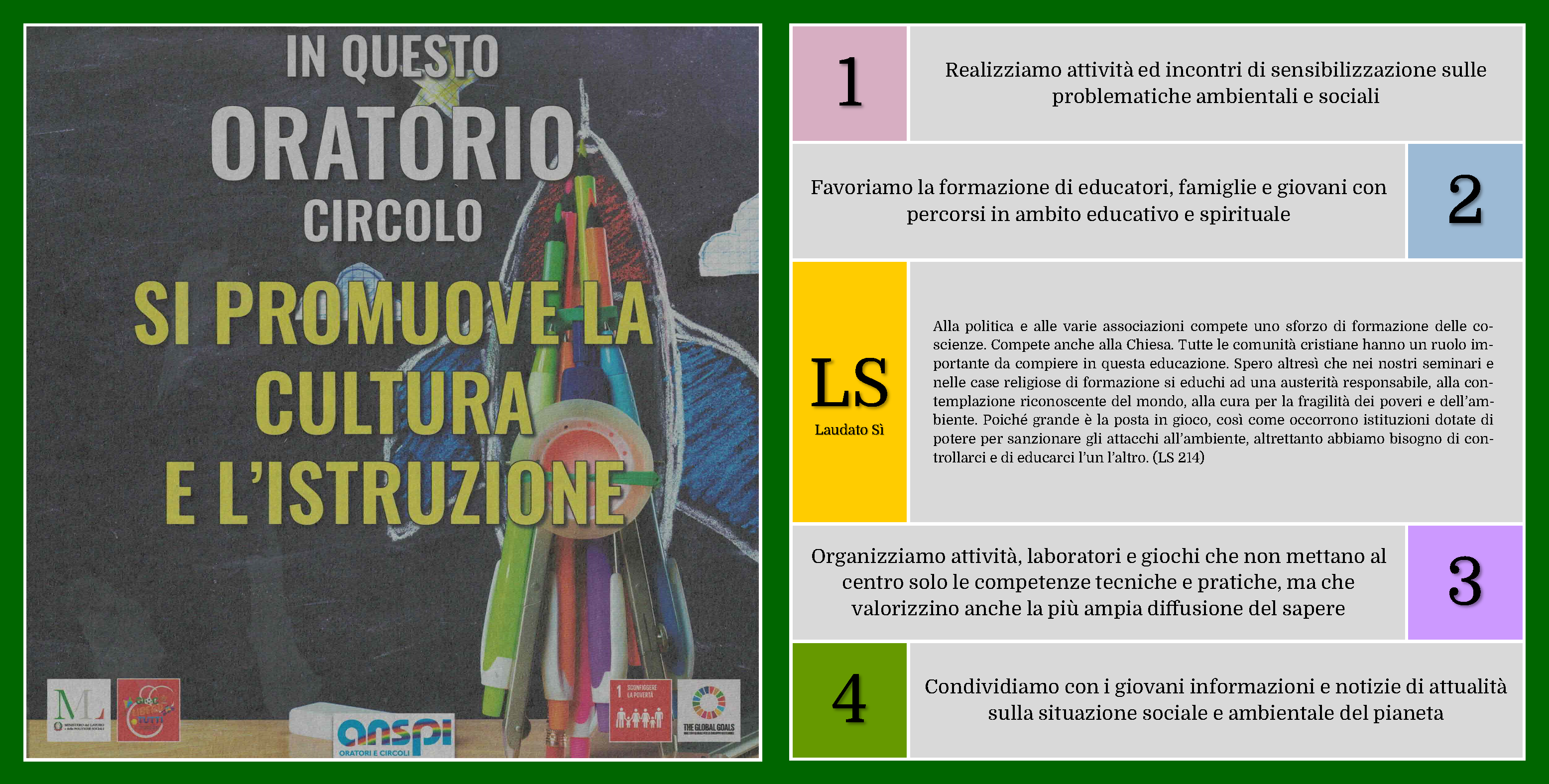 L’Oratorio Vandoni si impegna concretamente a promuovere, seguire e rispettare i princìpi di Ecologia Integrale contenuti nell’Enciclica Laudato sì